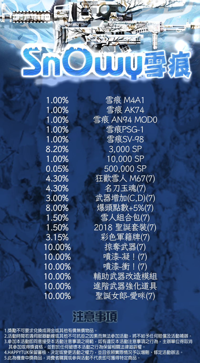活動時間若遇伺服器斷線或其他不可抗拒之因素而無法參加活動,將不給予任何賠償及活動補辦。
